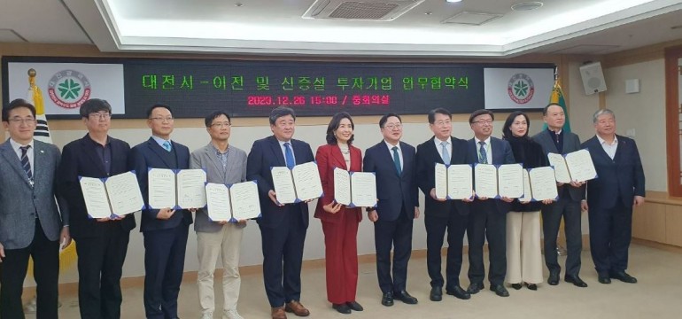 협약서는 기업 이전과 신설 투자를 비롯해 원활한 투자 진행을 위한 대전시 행정·재정적 지원으로 신규고용 창출과 지역경제 발전에 공동 노력하는 내용이 담겼다.