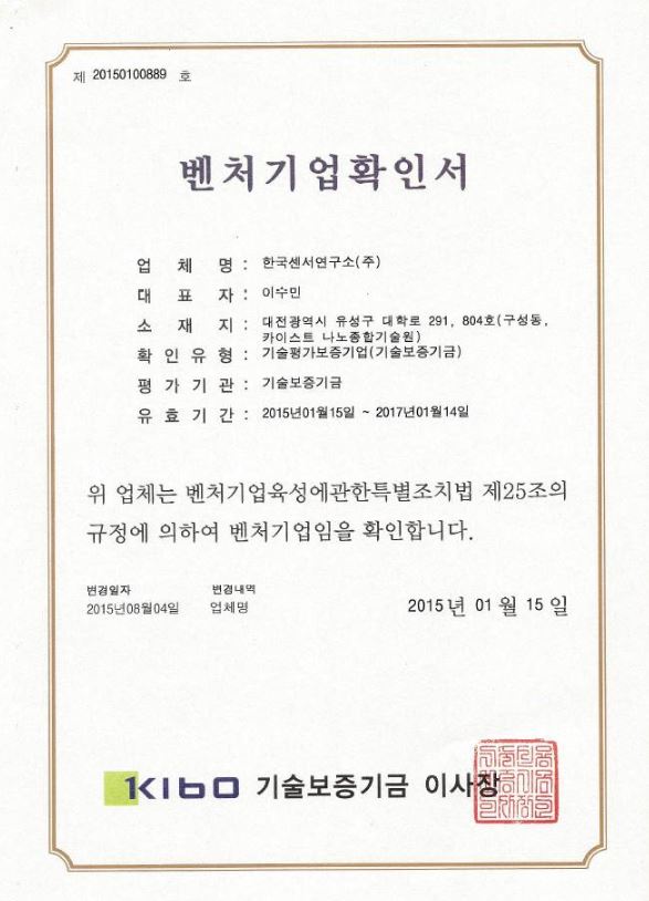 한국센서연구소, 벤처기업 인증