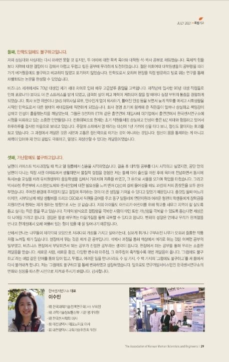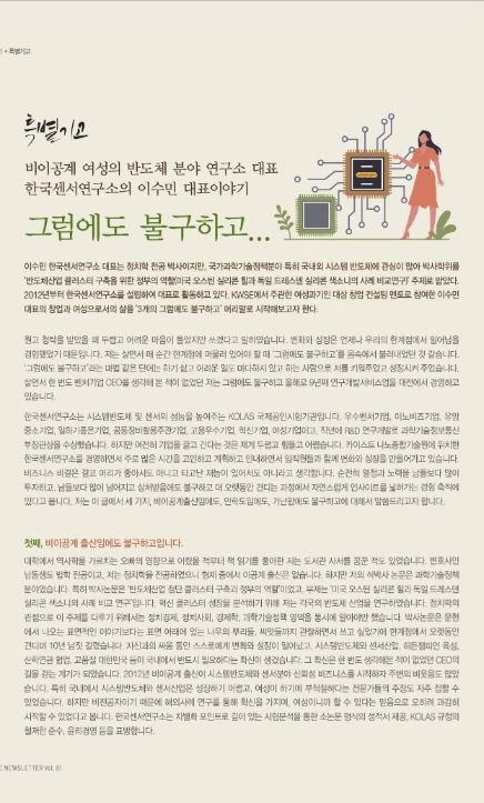 대한여성과학기술인회KWSE 81호 특집기사에 한국센서연구소 이수민 대표의 창업이야기가 실렸다 .