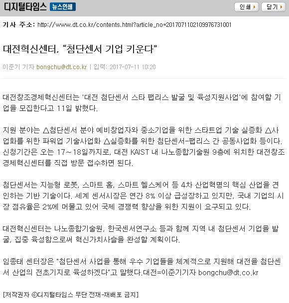 대전혁신센터 "한국센서연구소와 함께 첨단센서 기업 키운다"
