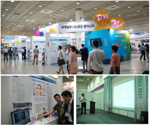 한국센서연구소는 지난 7월 1~3일까지 서울 코엑스에서 열린 ‘나노코리아 2015’전시회에 대전관으로 참여했다. 이번 전시회에 한국센서연구소를 포함하여 8개 기업(펨스, 블루시스, 유니플라텍, 코셈, 디오, 스폰코리아, 한국센서연구소, 비엠시스)·4개 기관이 참가해 대전관을 운영하였다.