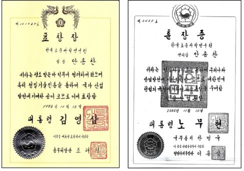 한국센서연구소 안종찬 품질책임 이사, 대통령상 수상 경력