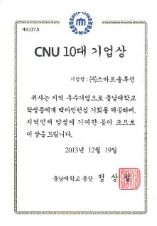 한국센서연구소(구 (주)스마트솔루션)는 2013 12 19일 ‘CNU 10대 기업상을 수상하였다.